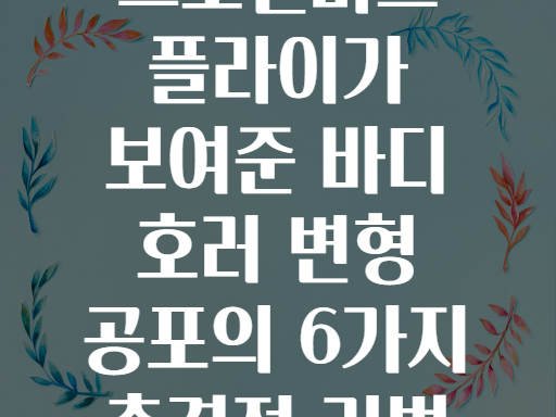 - ๐น ๊ฐ๋ ๋ช , ์ฃผ์ ์ํ, ์ฅ๋ฅด ํ๊ทธ(Body Horror, ๋ณํ, ๊ดด๊ธฐ)๋ฅผ ๊ฒ์ํ๋ค.